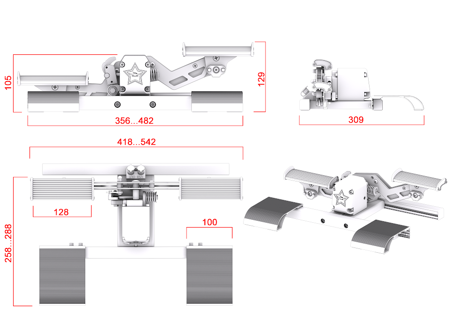 Традиционная для устройств VIRPIL Controls полностью металлическая начинка представляет собой однокулачковый механизм с загрузкой на основе пружины сжатия. Два варианта кулачков и пружин дают возможность подобрать оптимальный профиль усилия при любом отклонении от центра. А сама пружина, находящаяся в легком доступе, позволит с минимальным инструментом дополнительно корректировать настройки педалей даже «в полёте».